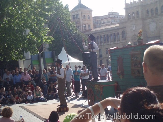 Desde el pasado martes, las calles de Valladolid se han inundado de artistas y, con el buen tiempo, de gente con ganas de ver arte. Se está celebrando en la ciudad el XII Festival Intenacional de Teatro y Artes de Calle, que tiene como punto de encuentro distintos rincones y lugares de paso. El Teatro Zorrilla, la Carpa del Milenio, la Acera Recoletos, la Plaza Mayor, la Calle Santiago… Cualquier sitio es bueno para reunir a personas alrededor de una actuación.
